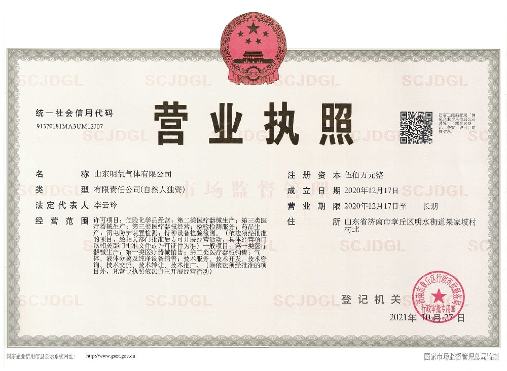 ??? 山東明氧氣體有限公司的前身為始建于1993年的章丘市明水氧氣廠,2020年12月企業(yè)由民營(yíng)獨(dú)資轉(zhuǎn)型升級(jí)為山東明氧氣體有限公司,企業(yè)進(jìn)入新的發(fā)展階段。公司位于山東省濟(jì)南市章丘區(qū)明水街道杲家坡村村北,占地面積4000平方米,注冊(cè)資金500萬(wàn)元,固定資產(chǎn)投資3000萬(wàn)元,主要經(jīng)營(yíng)項(xiàng)目為醫(yī)用氧氣、工業(yè)氧氣、氮?dú)狻⒏呒兊獨(dú)狻鍤狻⒏呒儦鍤狻⒏呒兒狻⒍趸肌⒒旌蠚怏w等各種工業(yè)氣體、高純氣體、混合氣體的充裝銷(xiāo)售、各類(lèi)氣瓶的銷(xiāo)售、安全閥校驗(yàn)、鋼質(zhì)無(wú)縫氣瓶的檢驗(yàn)等。